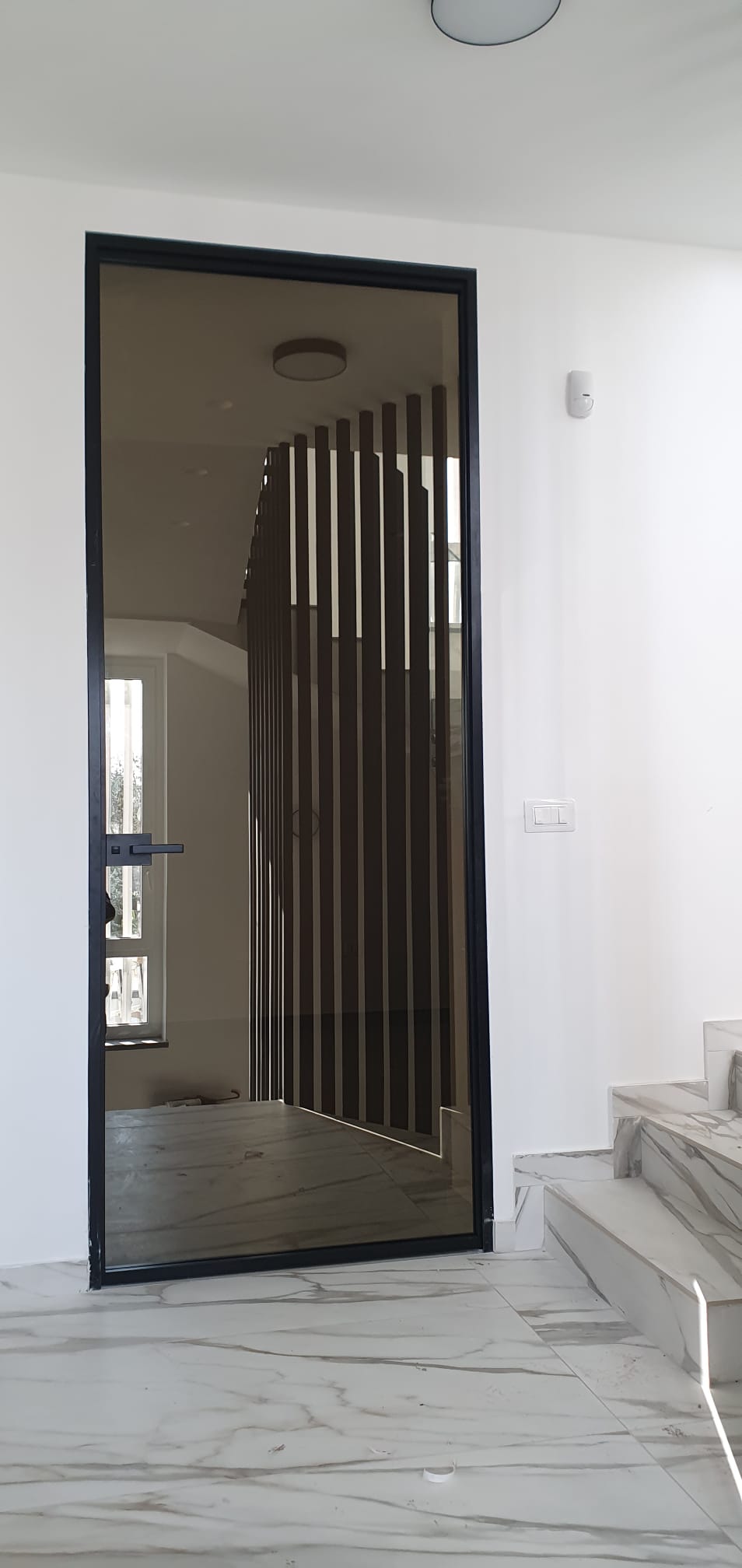 Soluzioni versatili per ogni ambiente: le nostre porte a battente sono disponibili con anta a telaio in alluminio o con anta tutto vetro.
